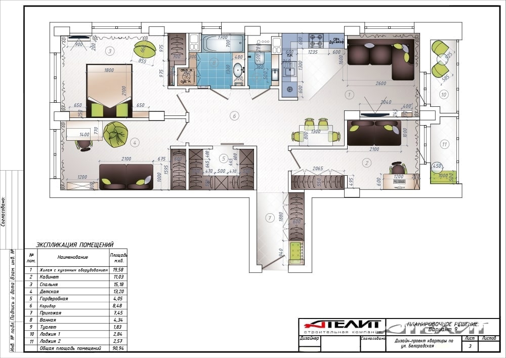 четырехкомнатная квартира по ул. Белградской, 90 м²