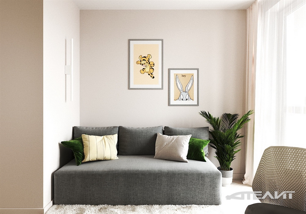 За счет близости к окну, диван можно использовать как удобное место для чтения. При необходимости он легко раскладывается и превращается в просторное спальное место.