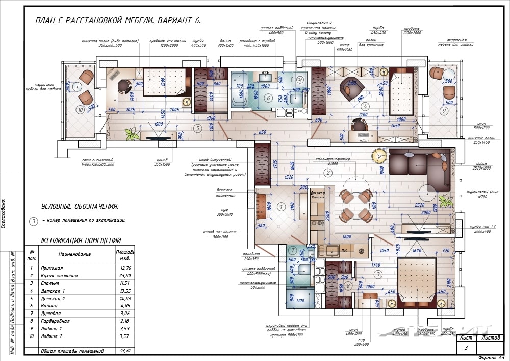 Задача: Грамотно объединить кухню и гостиную для создания просторного и комфортного помещения. Обустроить комнаты для детей разных возрастов. Создать функциональные лоджии.