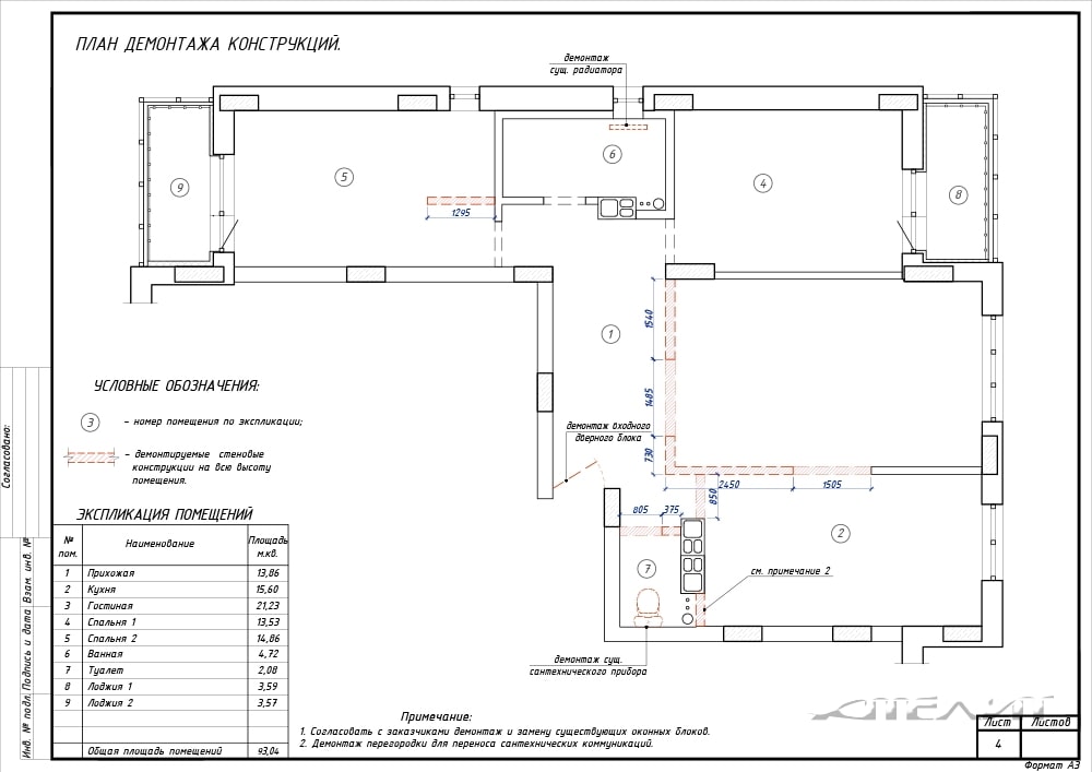 4-комнатная квартира с 2-мя лоджиями, 93,01 м²