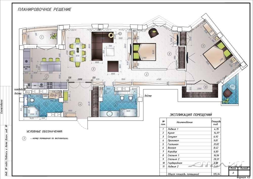 Задача: Создать удобный интерьер квартиры для семьи, вместе с которой живет бабушка. Учесть требования каждого члена семьи, гармонично согласовать между собой дизайнерские решения для разных комнат, обустроить лоджии и зонировать пространство кухни-гостиной.
