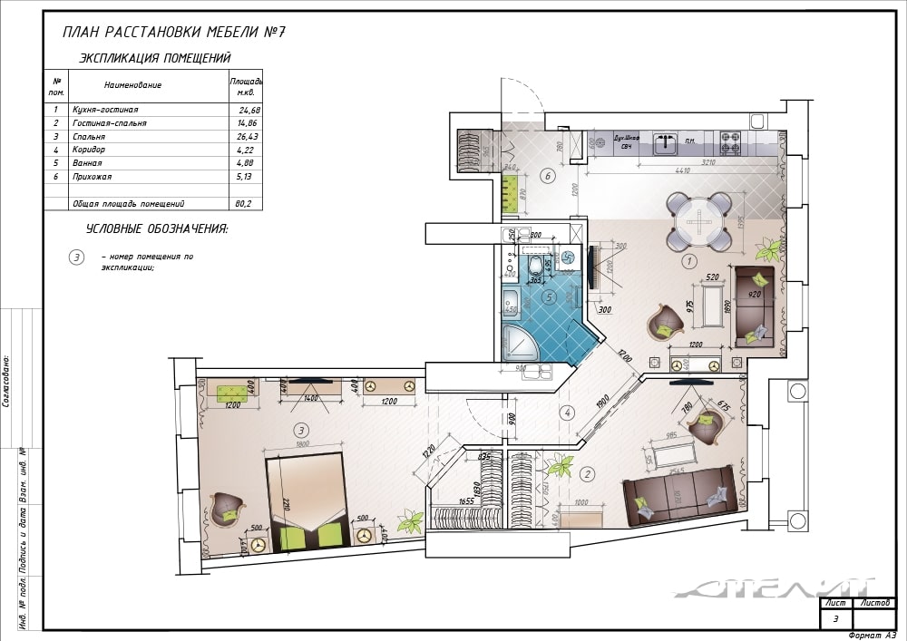 Задача: Грамотно обустроить однокомнатную квартиру в классическом стиле.