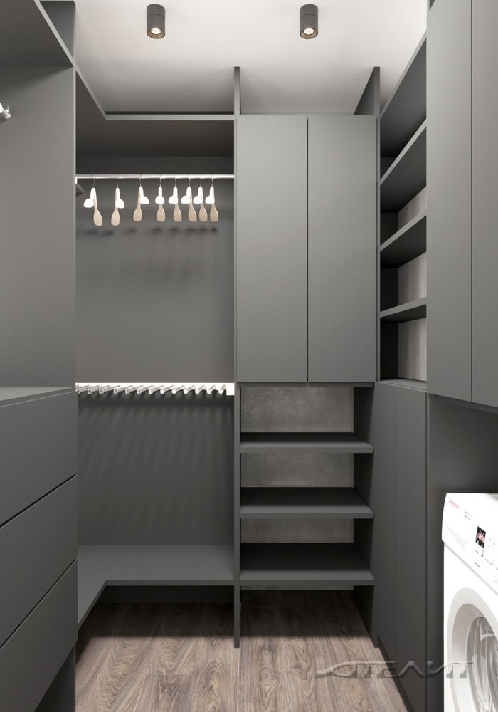 Из прихожей предусмотрен вход во вместительный гардероб для хранения верхней одежды, обуви и аксессуаров.