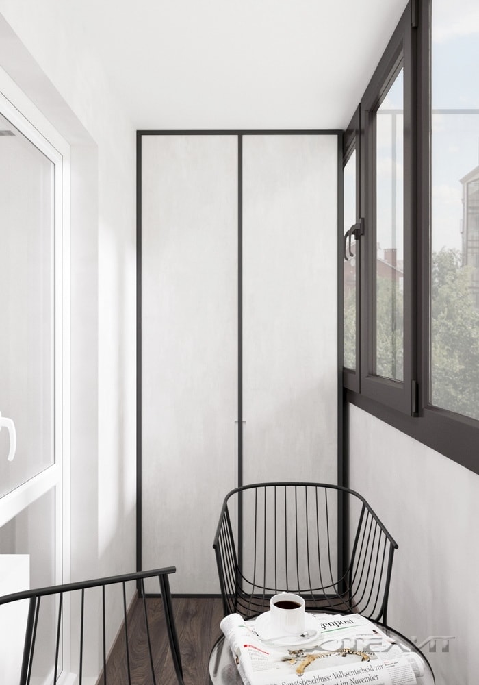 Балкон был превращен в продолжение жилого пространства, в котором размещена комфортная зона отдыха.