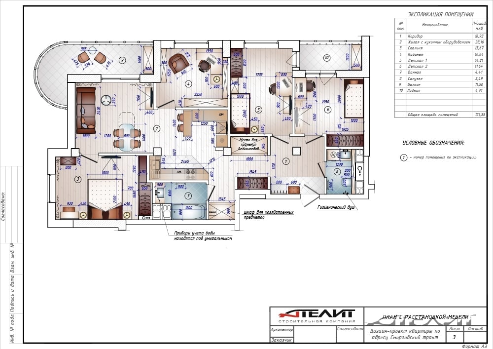 Четырехкомнатная квартира с двумя лоджиями общей площадью 121,35 м²