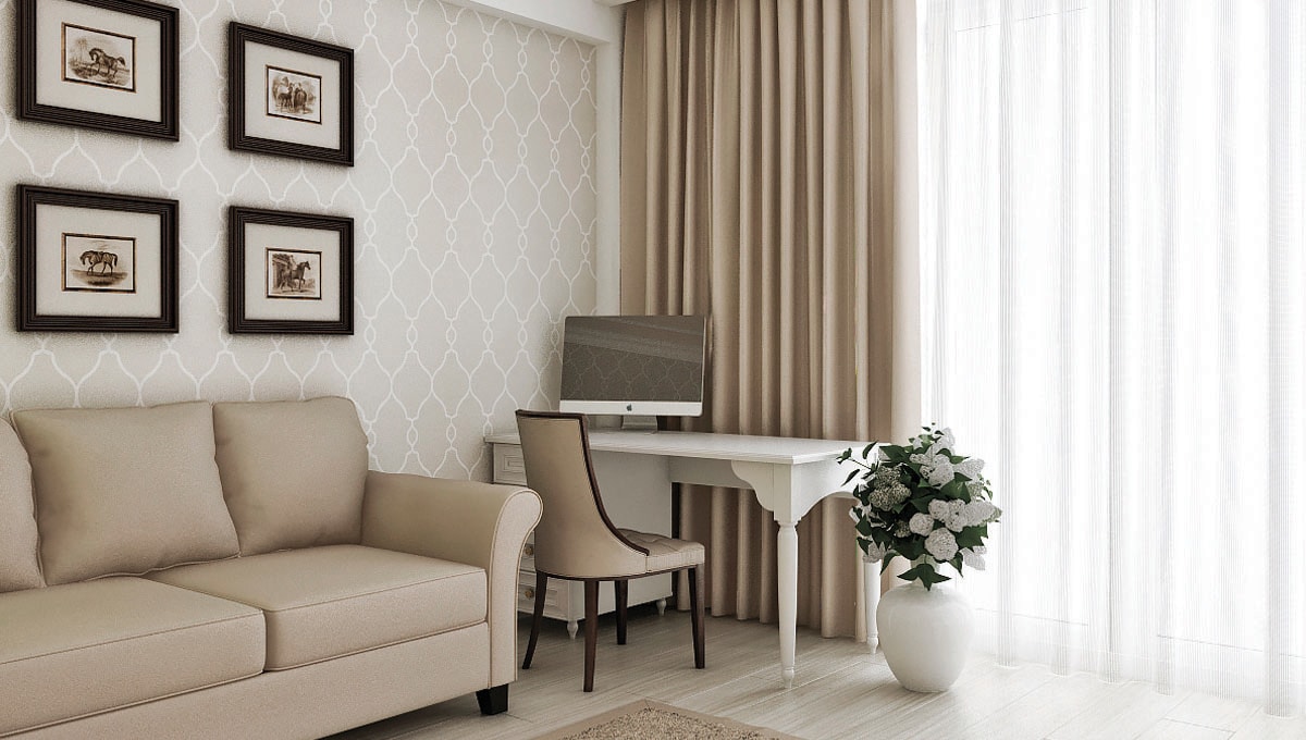 Обустроить кабинет, выбрав для оформления интерьера спокойные тона.