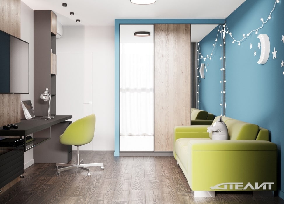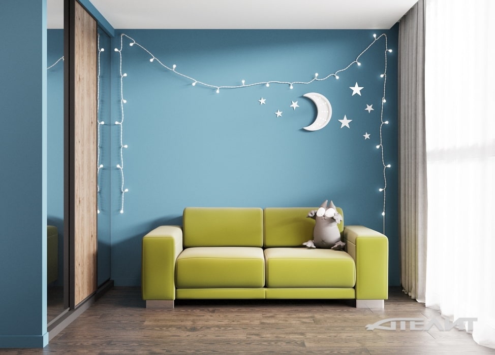 Комнота, которая должна излучать комфорт и позитив. Яркие краски и наличие насыщенных акцентов будет стимулировать ребенка к мыслительной деятельности и физической активности.