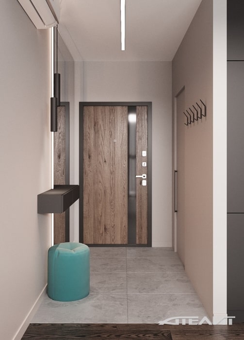 Для узкой прихожей хорошим вариантом будет размещение вешалки с крючками.Также для это участка необходимо мини кресло или маленькая скамеечка. И конечно же большео зеркало, чтобы перед выходом посмотреть на свой внешний вид.