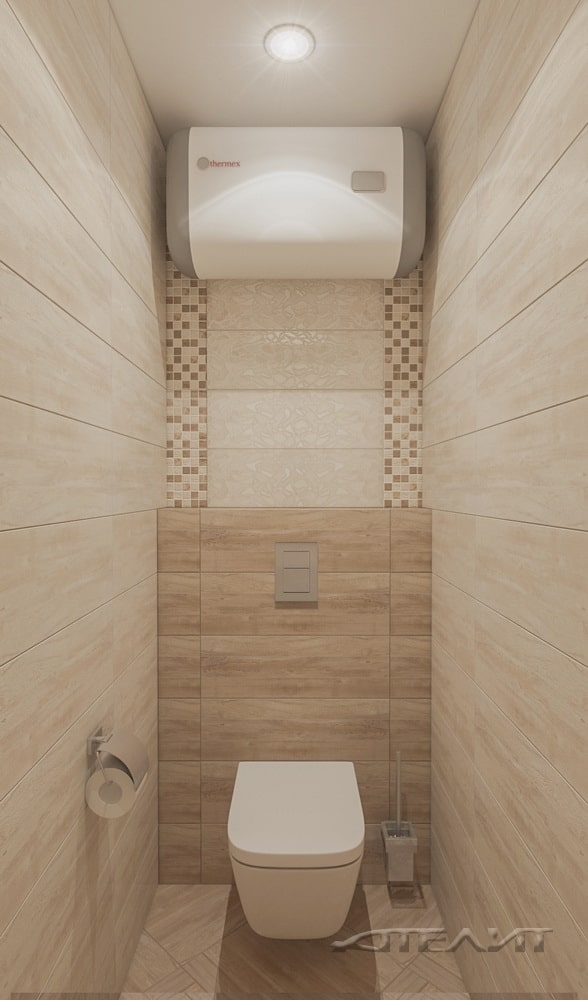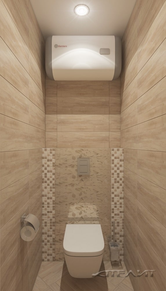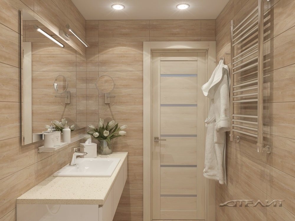 Во втором проекте меняется лишь декор на стенах, в остальном ванная остается такой же, как в первом варианте.