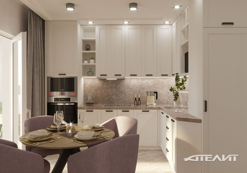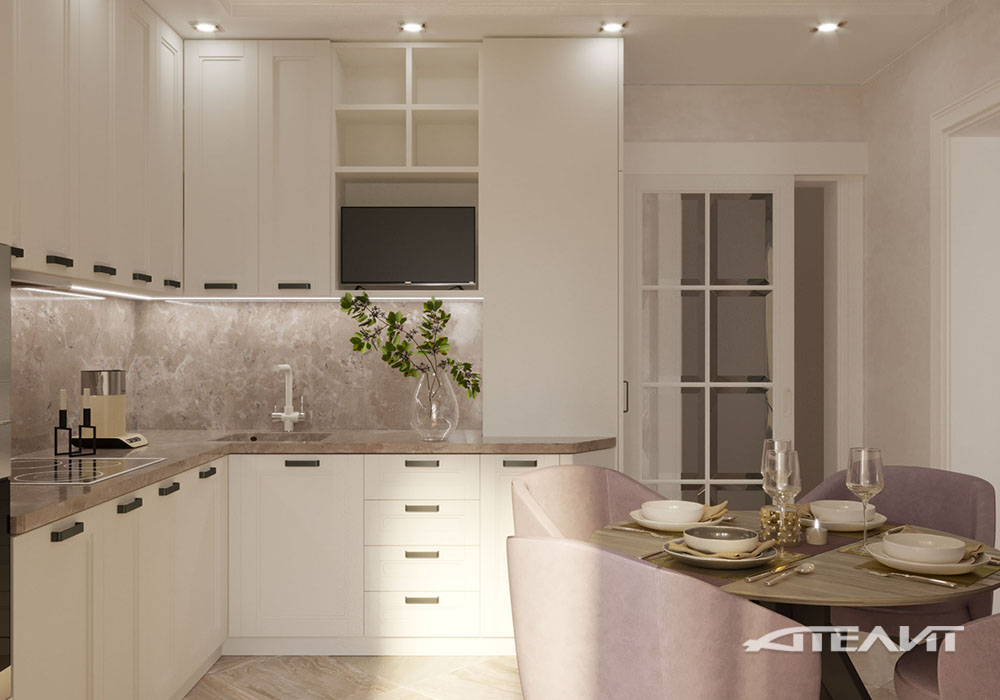 Основным преимуществом светлого интерьера является визуальное расширение пространства. Светлая кухня всегда будет казаться просторнее и воздушнее. Универсальность светлых тонов позволили нам создать помещение полностью индивидуального дизайна.