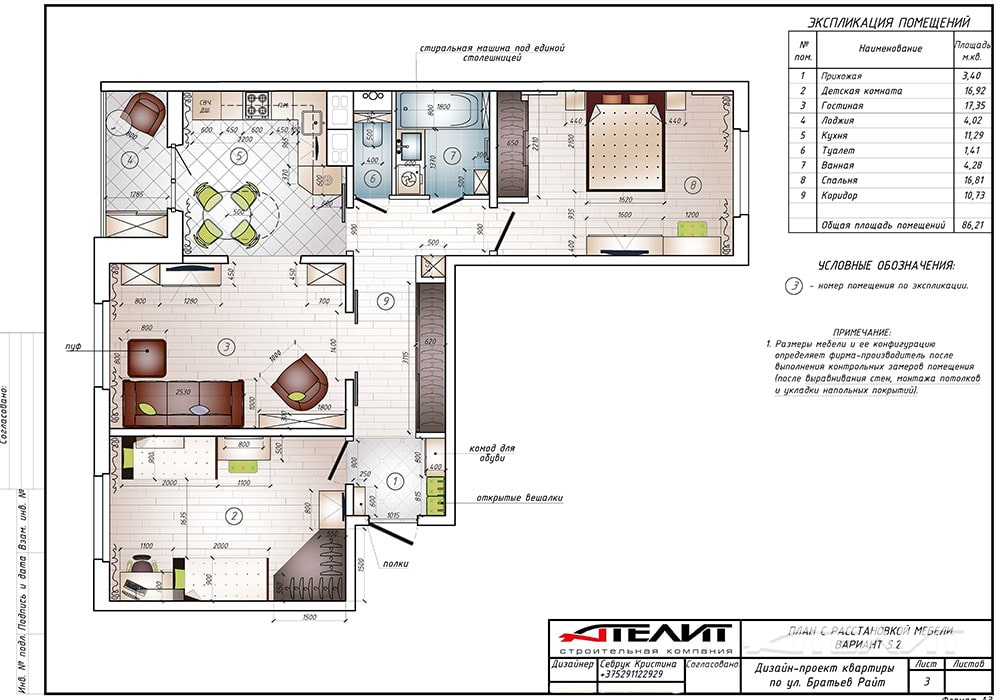 Общая площадь: 86,21 м.кв.