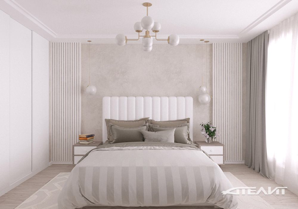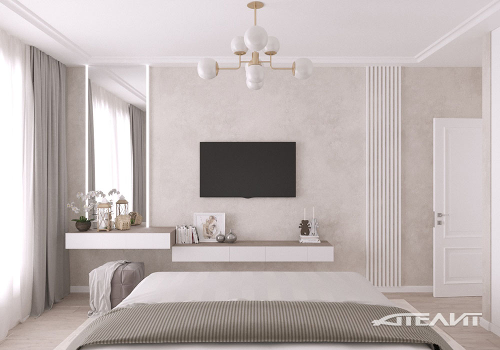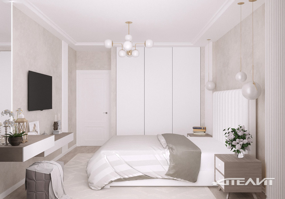 Рациональным решением для спальни и не только является организация специальной ниши, в которую встраивается шкаф, что упрощает в последствии его конструкцию и позволяет более гармонично вписать в интерьер.