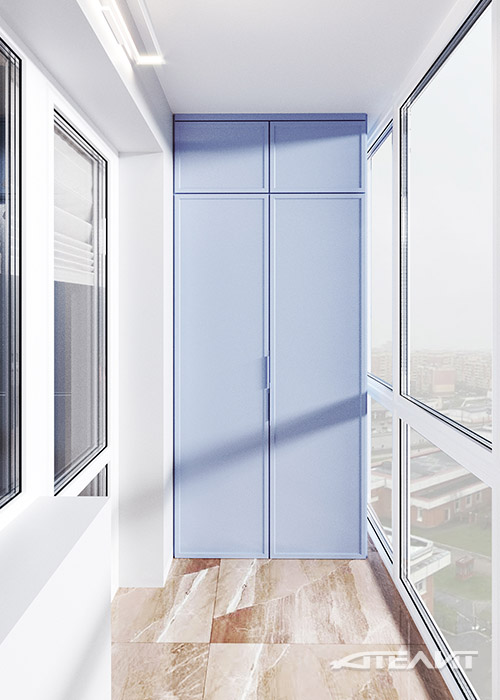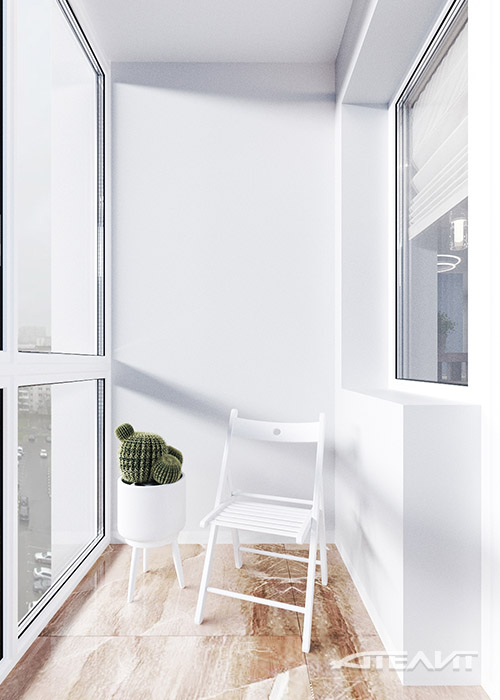 Просторная светлая лоджия с выходом из спальни после утепления и технических доработок превратилась в полноценное рабочее место.