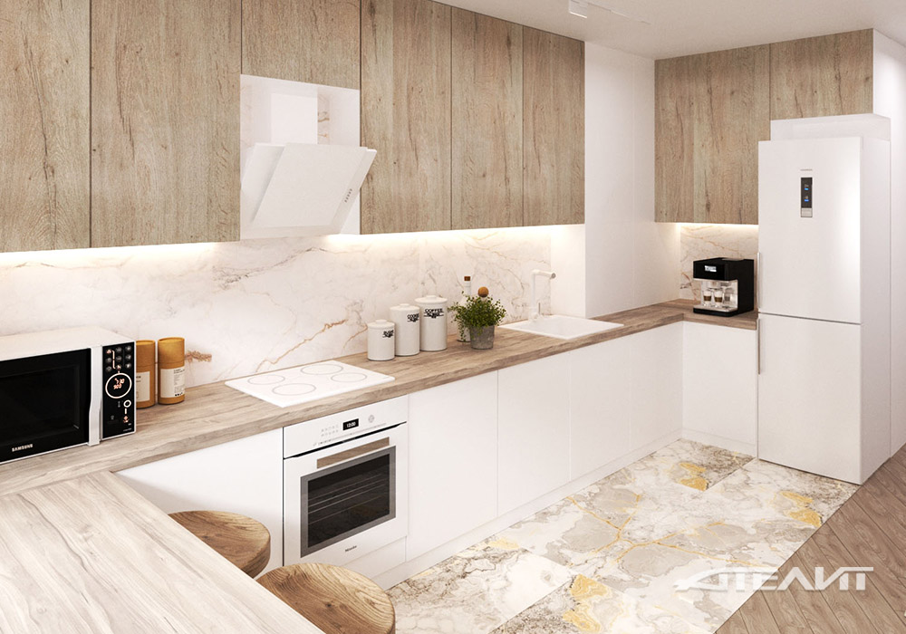 В снову идеи для этого проекта был выбран экостиль. Этот стиль предполагает светлые и просторные помещения. Экостиль предполагает ненавязчивые природные цвета. За основу взяли универсальный белый цвет и разбавили его пастельными, древесными и песочными оттенками.