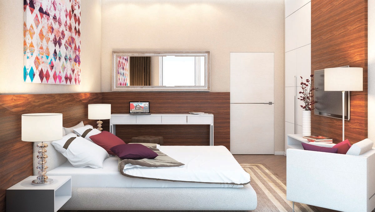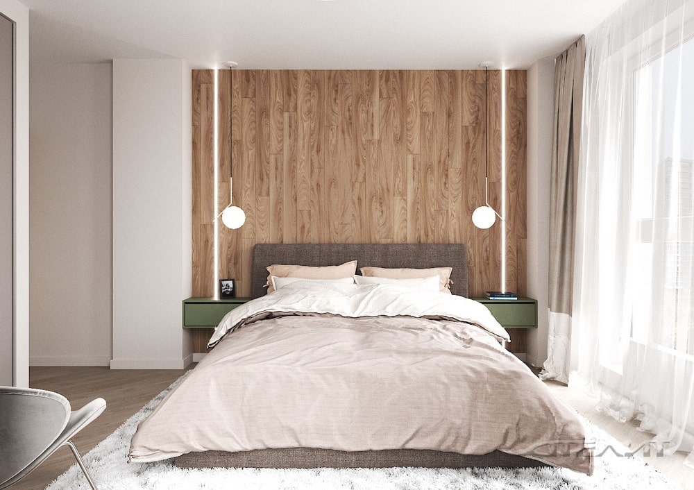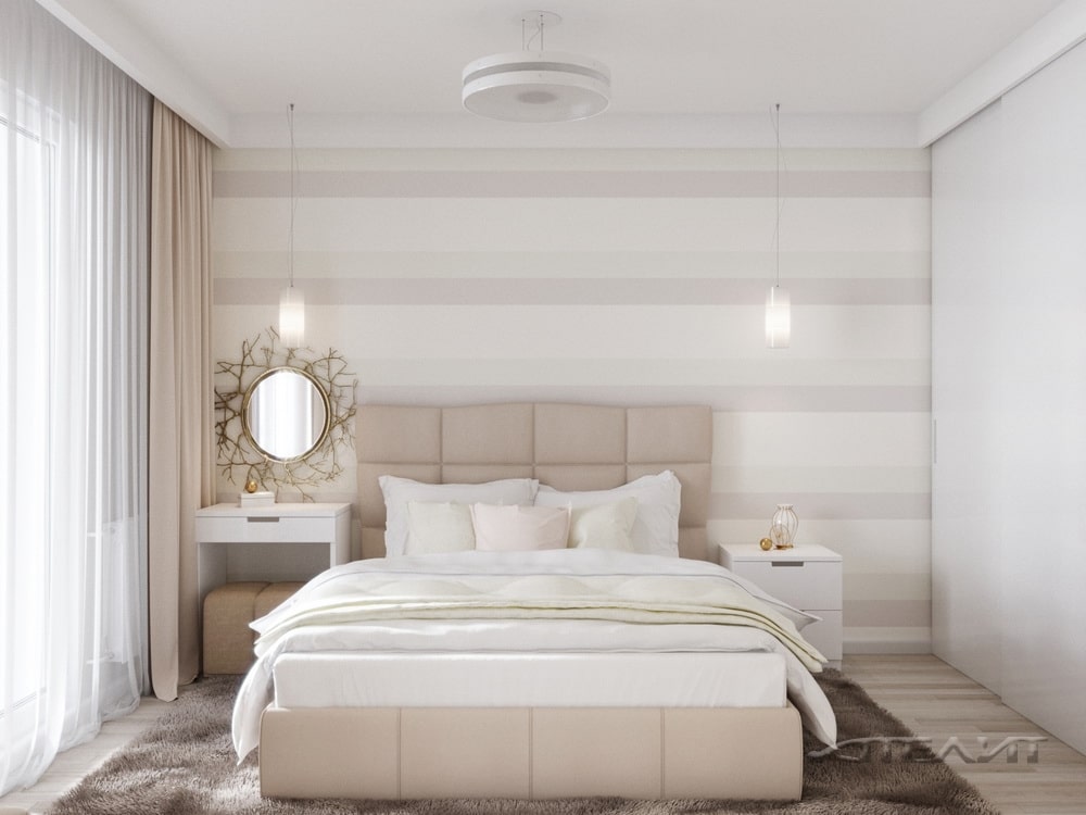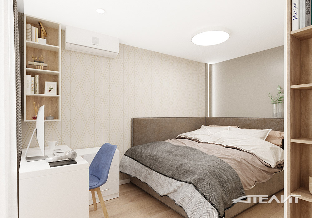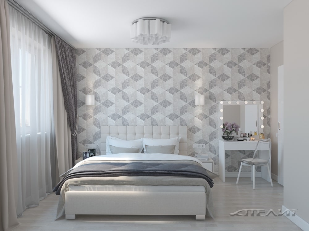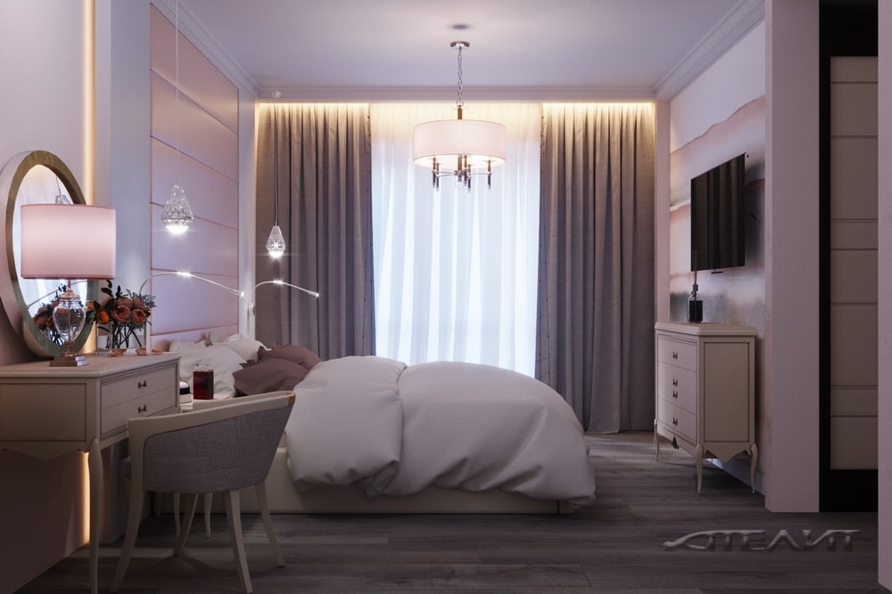 Дизайнеры решили разделить функциональные зоны с помощью грамотных инженерных решений, разработали привлекательный интерьер спальни, кухни, санузла и прихожей.