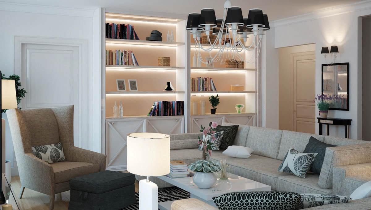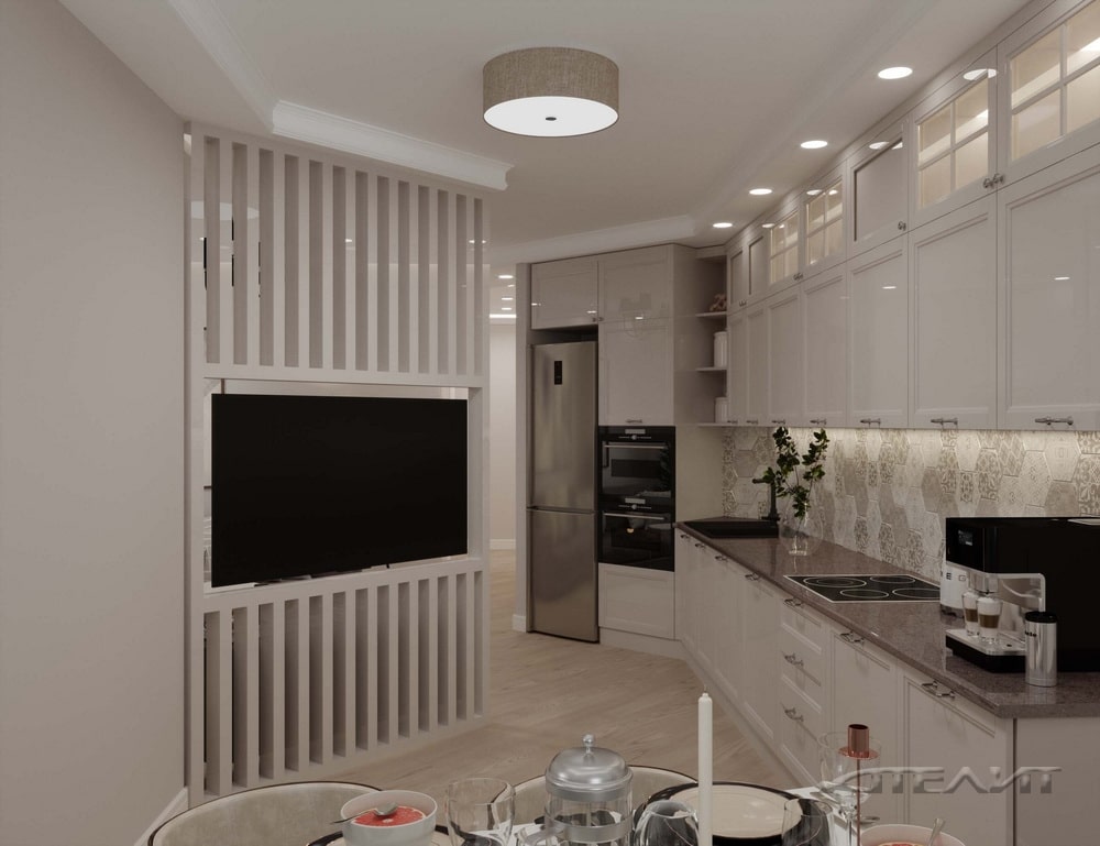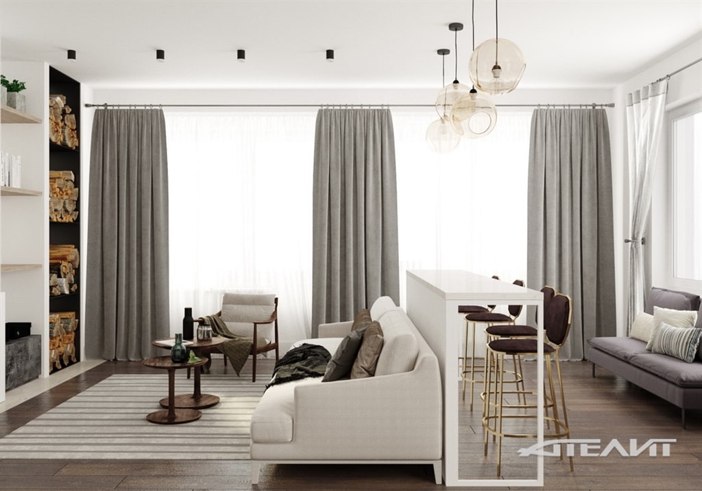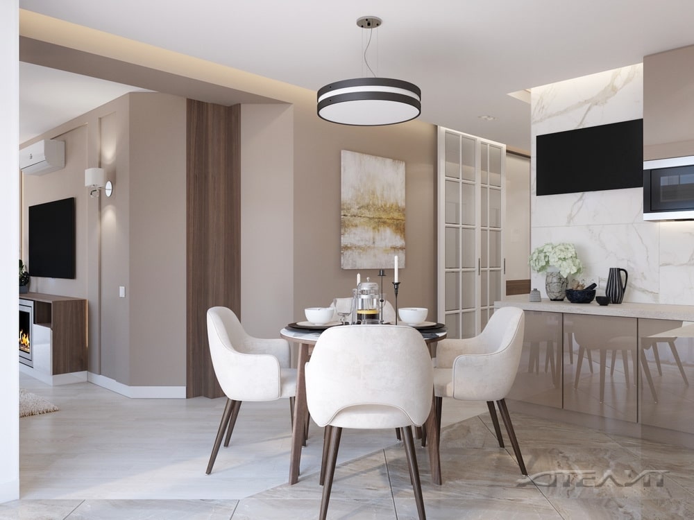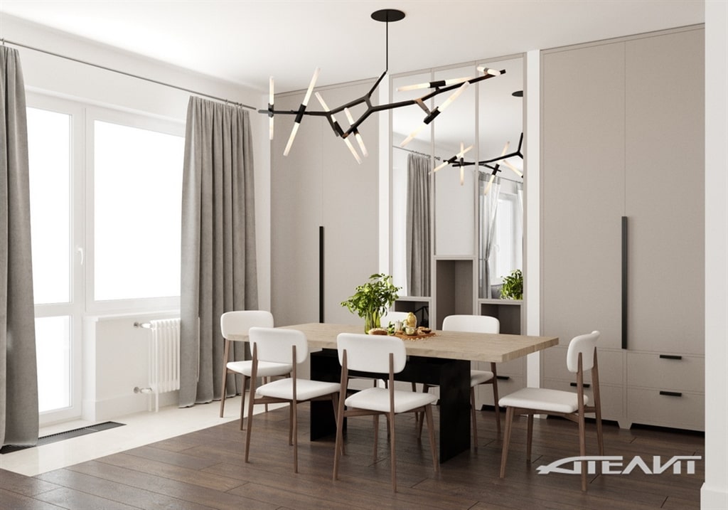 Современная и уютная квартира для семьи. Необходимого эффекта специалисты компании «Ателит» добились благодаря использованию приглушенных тонов с ненавязчивыми акцентами, а также идеальному сочетанию классических пропорций и современного лаконизма.