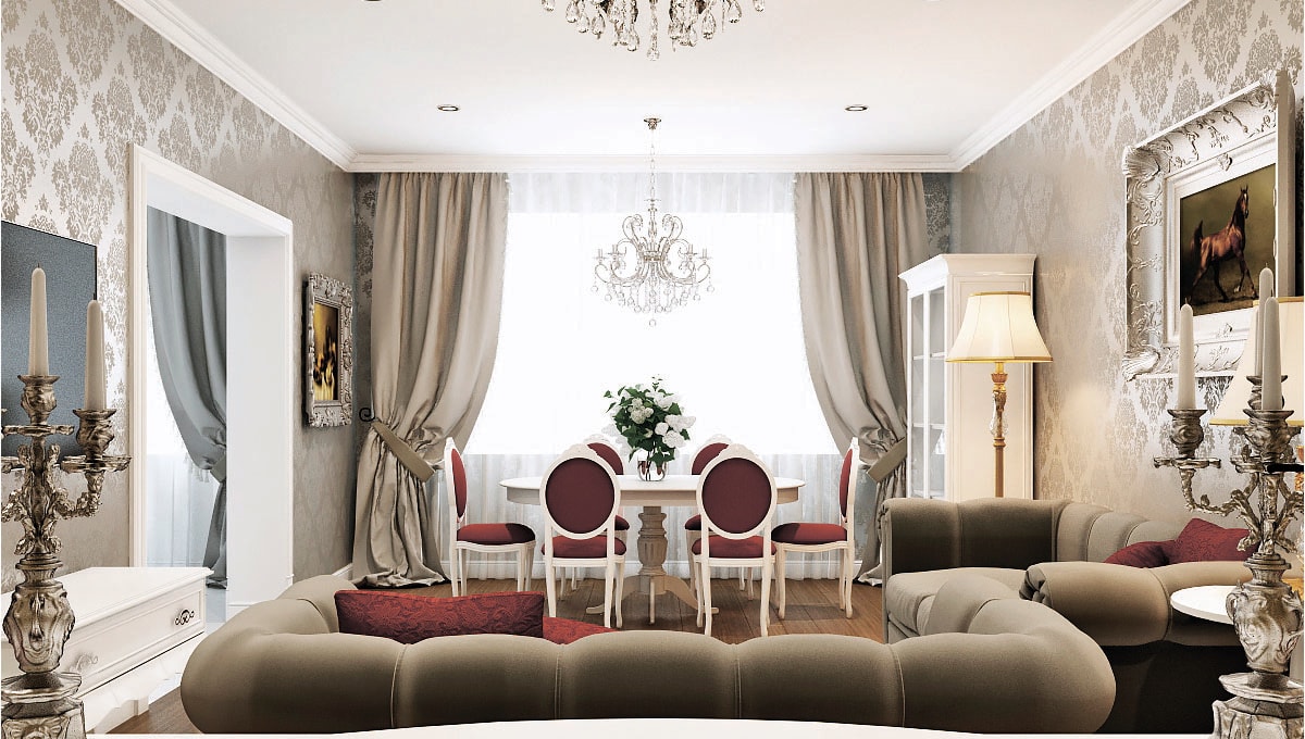 Классический интерьер в лаконичном исполнении от компании «Ателит». Такая просторная квартира идеальна для воплощения данного стилевого направления. Здесь в каждом интерьерной составляющей прослеживается элегантность. Роскошная мебель, добротные материалы, приятные натуральные оттенки – все подчинено общей атмосфере элитарности.