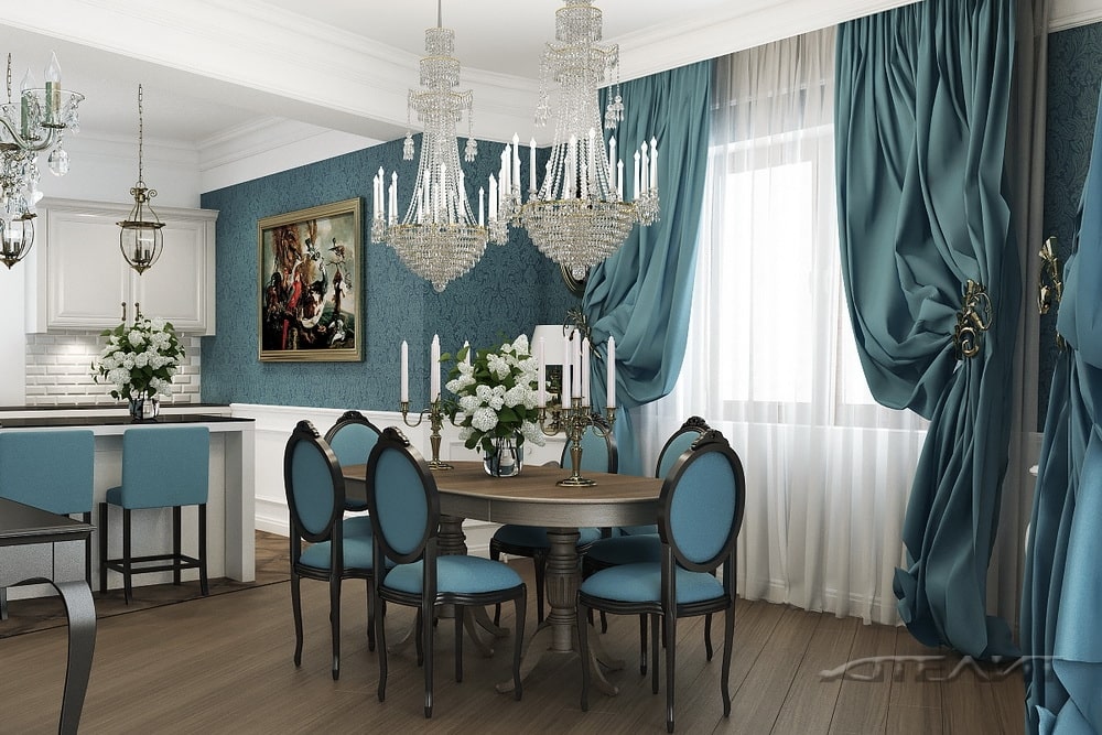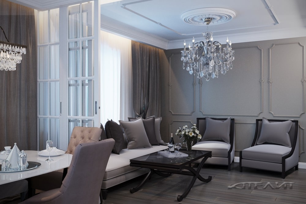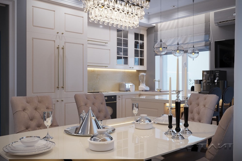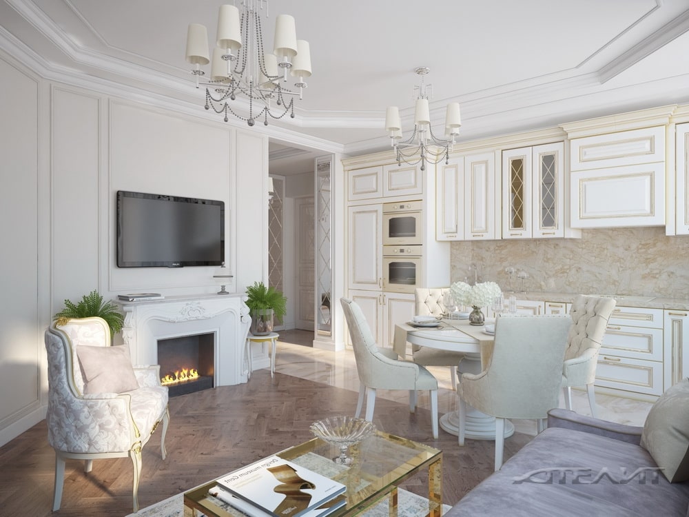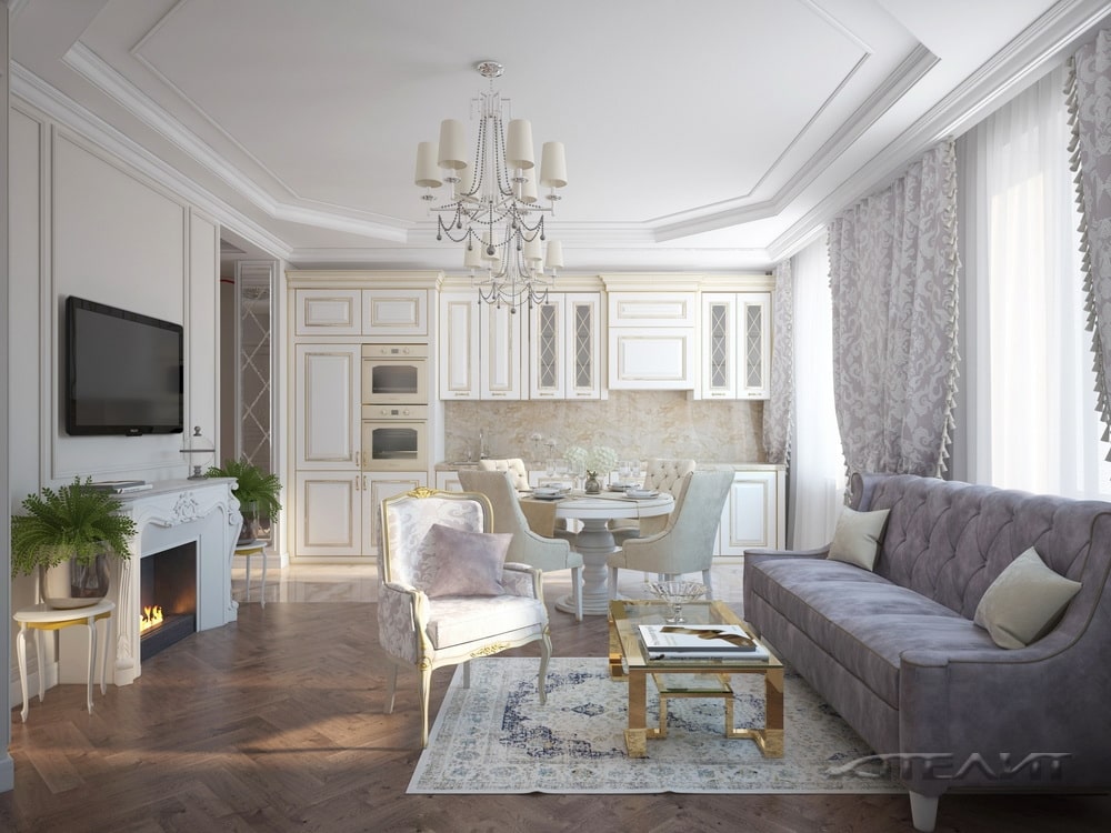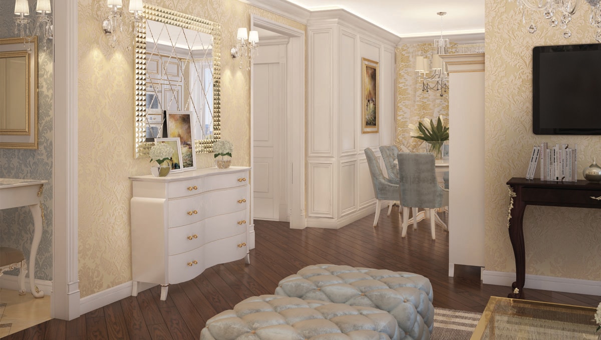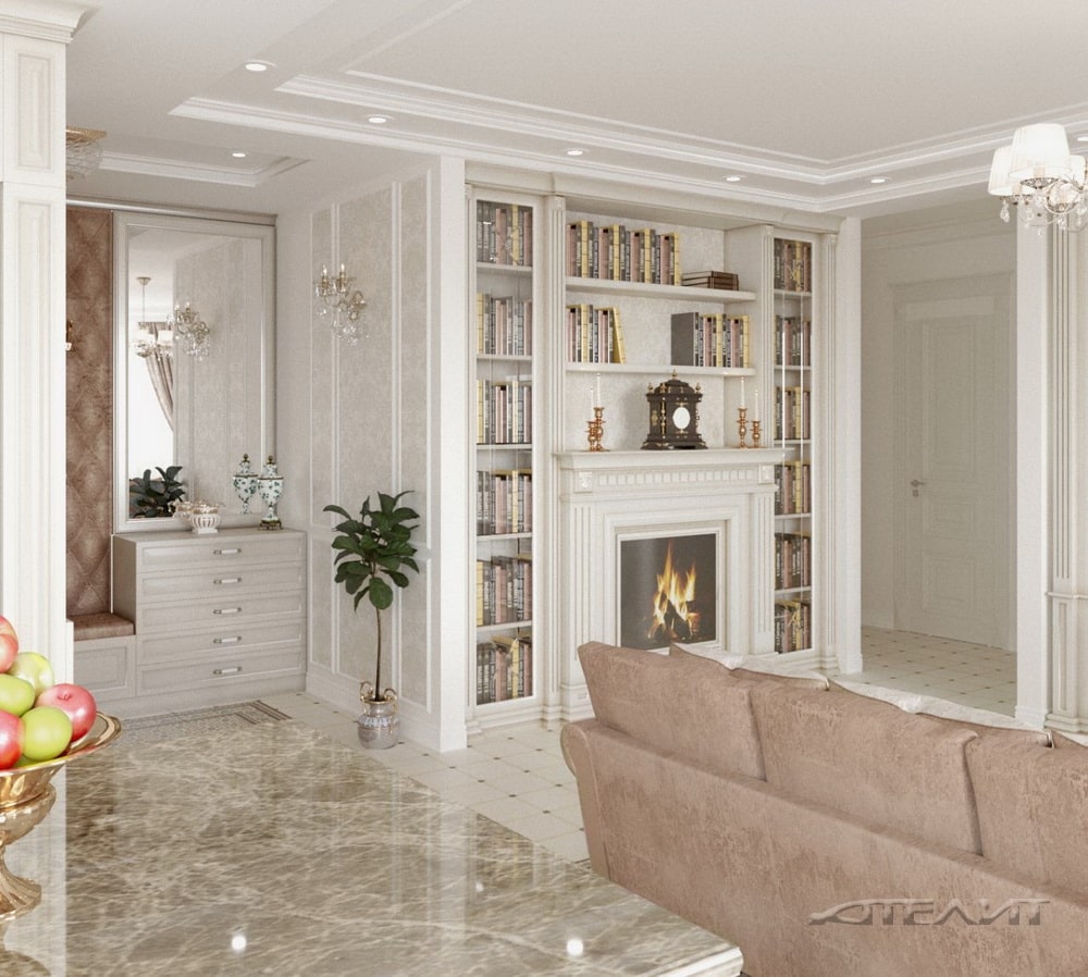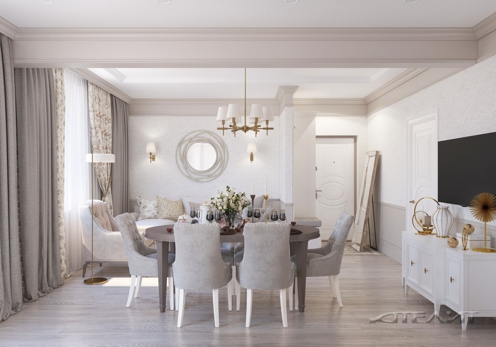 Изысканная квартира в классическом стиле от компании «Ателит». При оформлении квартиры использованы традиционные каноны данного направления, но пространство выглядит изысканным и утонченным и при этом воздушным и очень уютным.