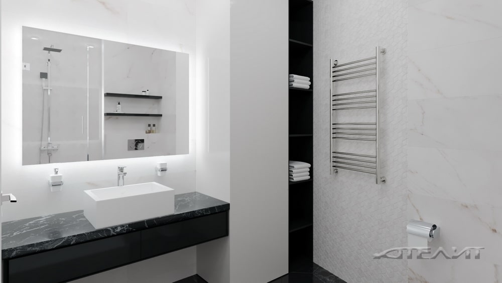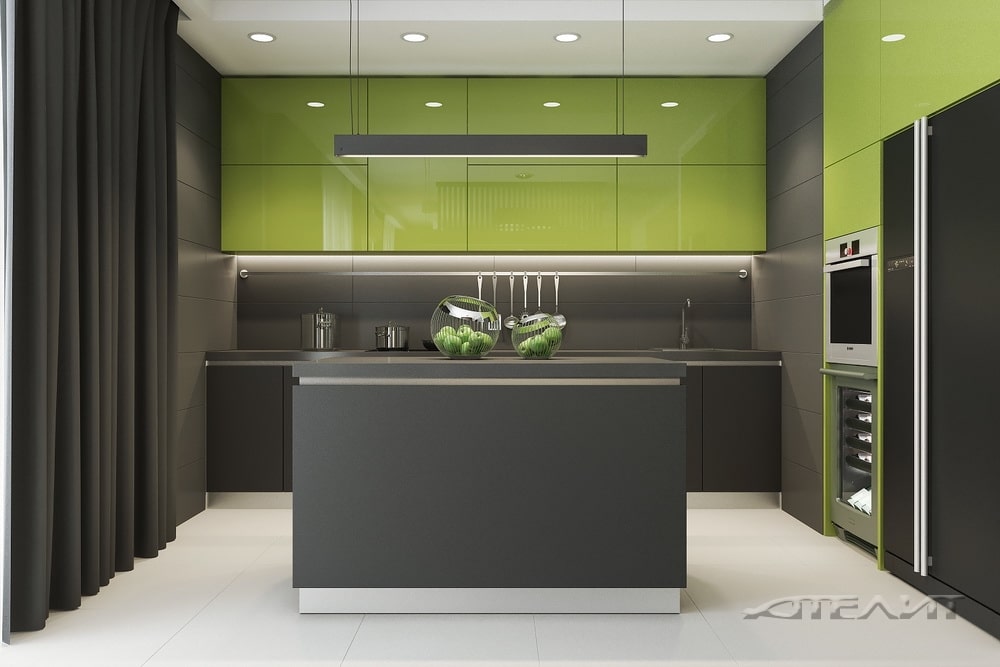 Сотрудники компании «Ателит» реализовали эффектный, максимально функциональный и комфортный интерьер в стиле хай-тек. Здесь царит сдержанность, которая подчеркивается строгими линиями и формами, монохромной цветовой гаммой с добавлением яркого акцента.