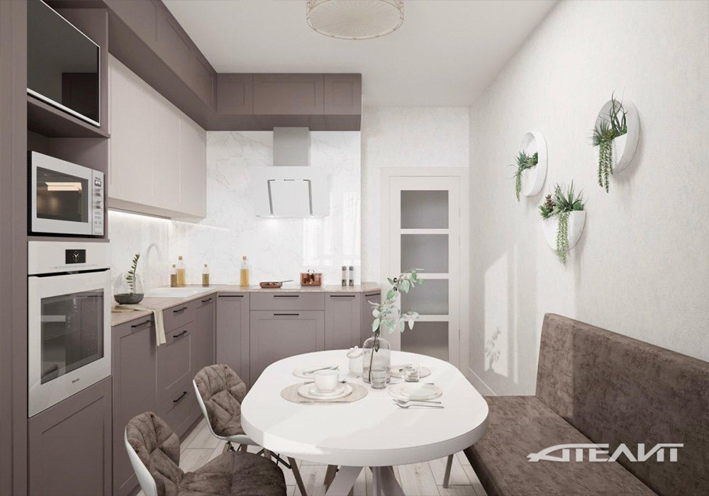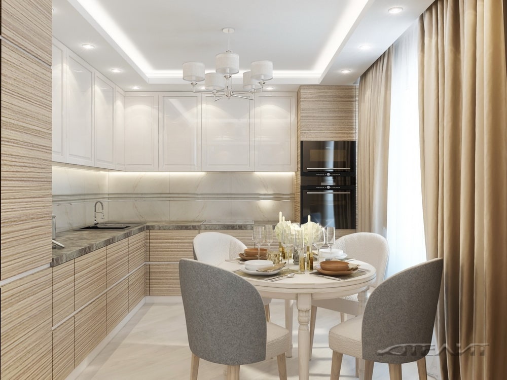 Строгий современный интерьер от компании «Ателит». Минимальное количество традиционных классических элементов добавляет изысканности и элегантности. Преобладание естественных оттенков и натуральных материалов создают атмосферу тепла и уюта.