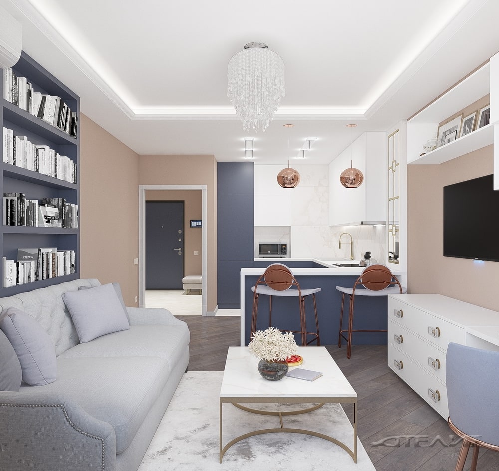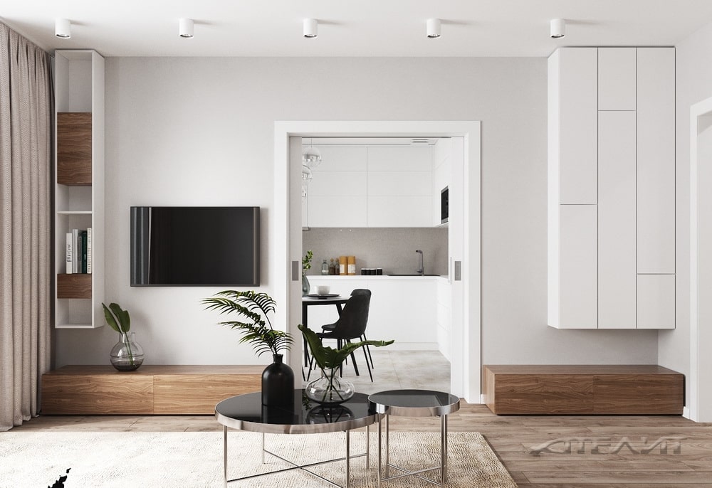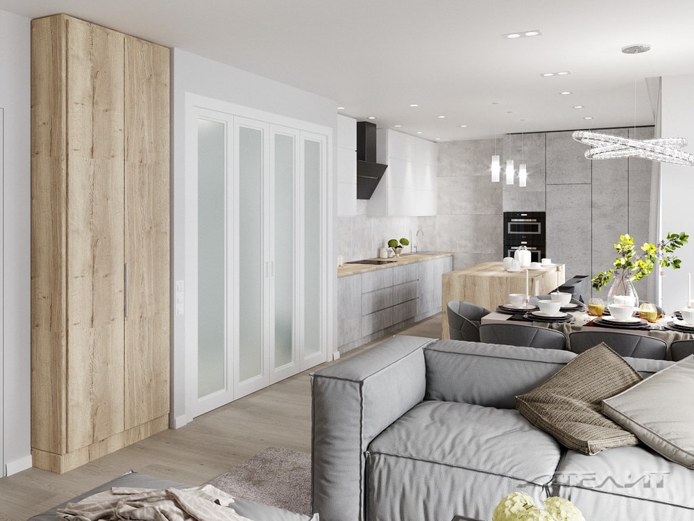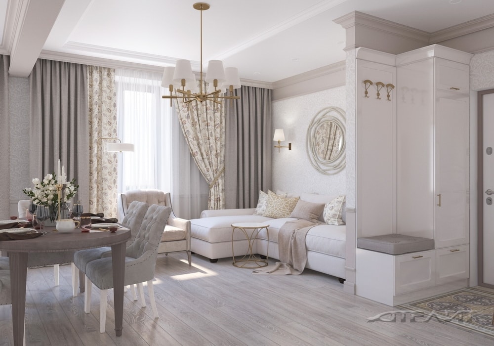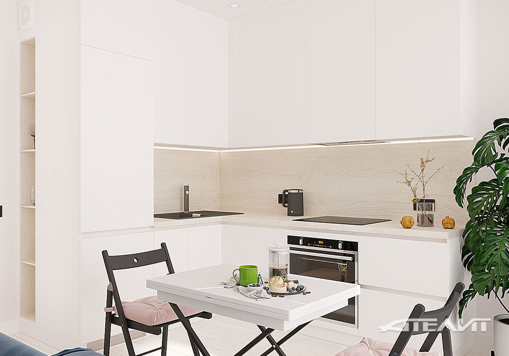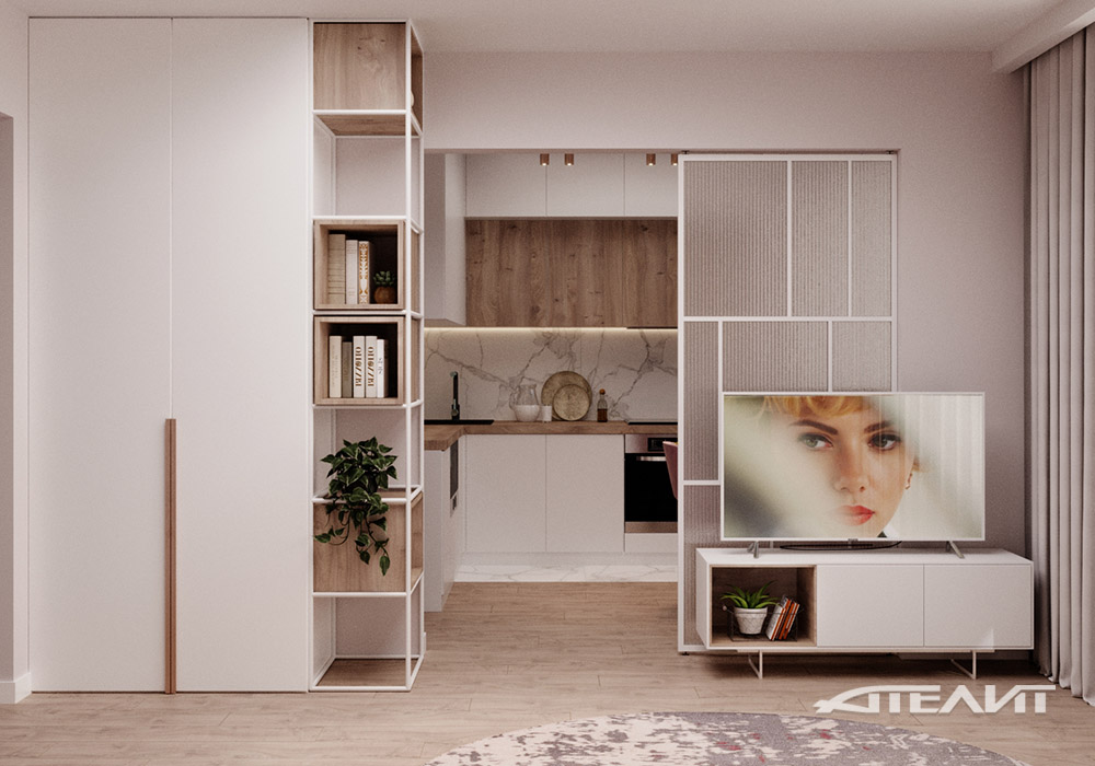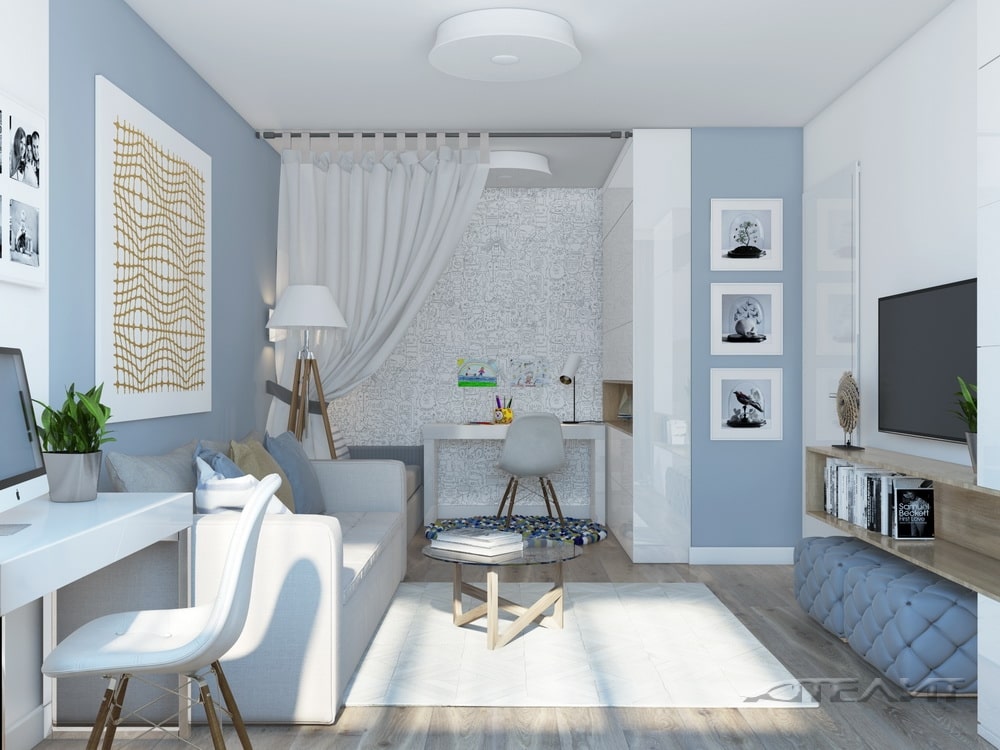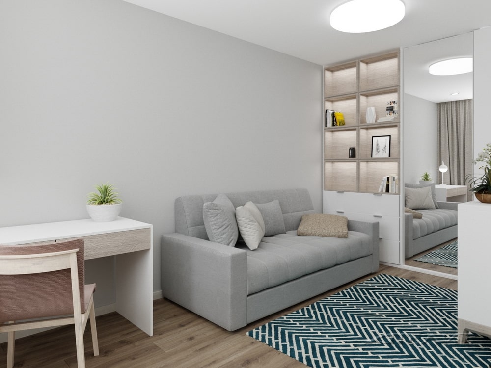 Проектирование маленьких квартир для дизайнера – это всегда небольшой квест. А в некоторых случаях и вполне большой, ведь зачастую ставится задача объять необъятное, поскольку, несмотря на небольшую площадь, должен быть соблюден определенный набор стандартов комфортного жилья: места хранения одежды, обуви, предметов обихода, комфортное место для сна и отдыха всех жильцов, рабочее место, а также полноценное место для приготовления и приема пищи.