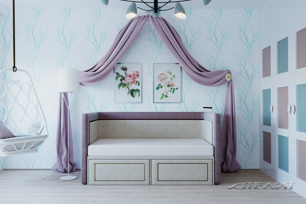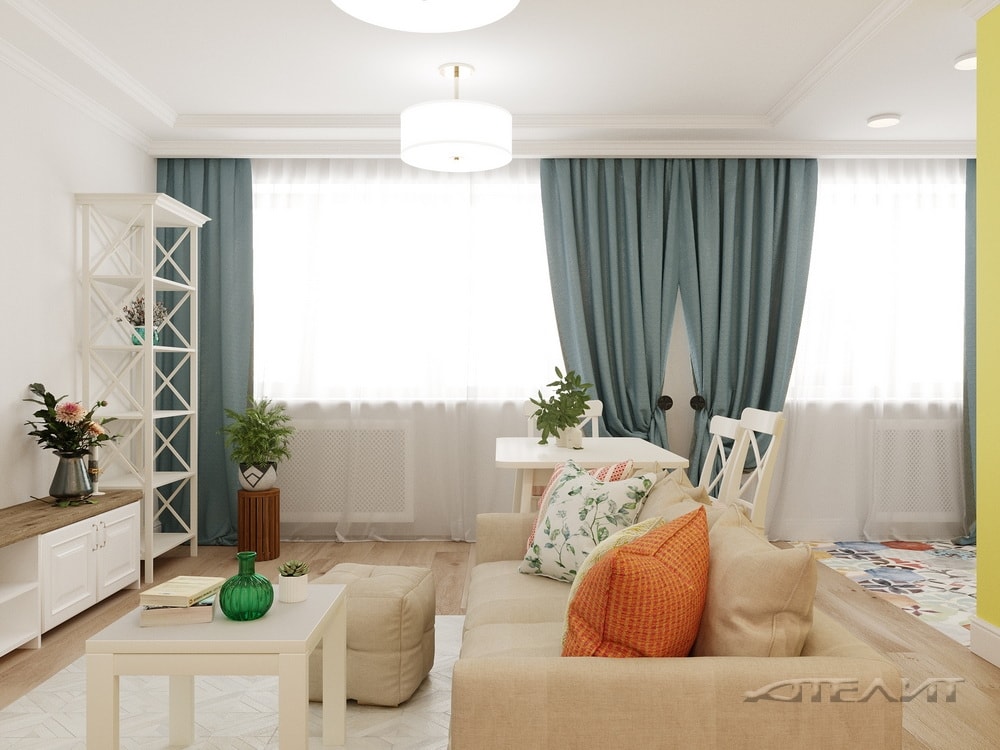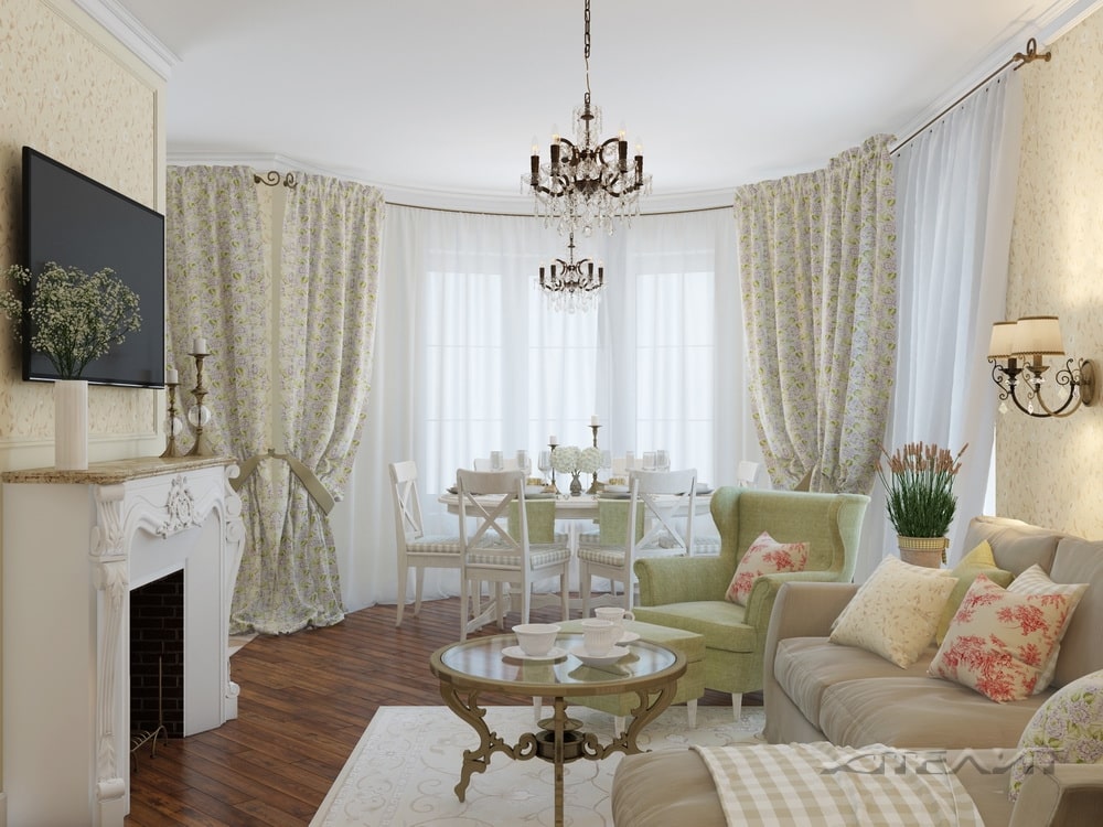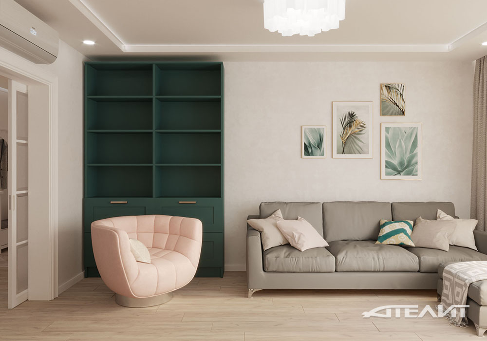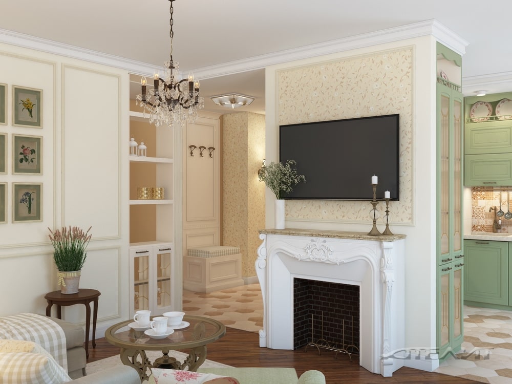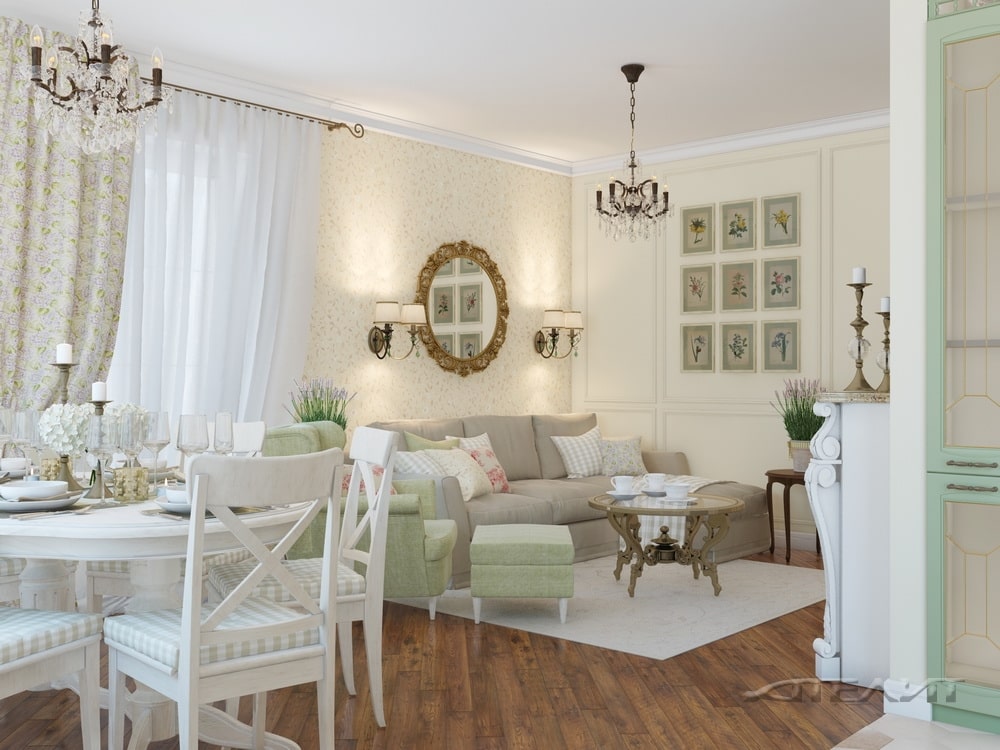 Дизайн-проект квартиры для семейной пары без детей. Жилая зона оформлена в стиле прованс. Мебель в пастельных оттенках салатового, голубого и розового. Комнаты выполнены в светлой кофейной палитре. Благодаря такому сочетанию оттенков квартира стала уютной, наполненной теплой и любовью.