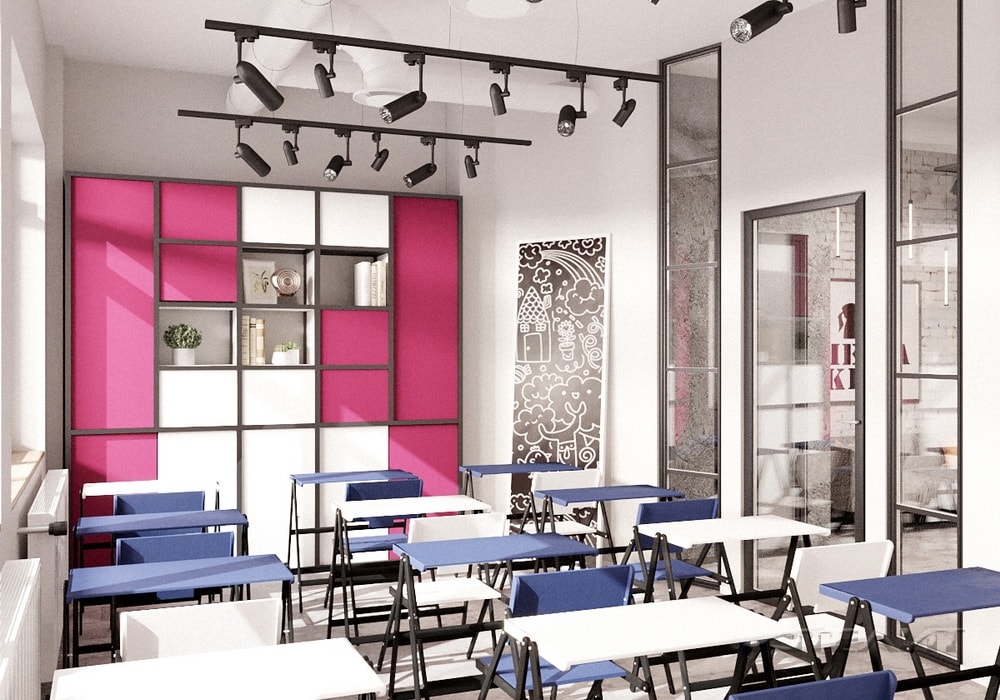 Дизайнеры студии «Ателит» доказали, что даже компактное помещение с нетиповой планировкой при грамотном подходе можно превратить в удобное учебное пространство.