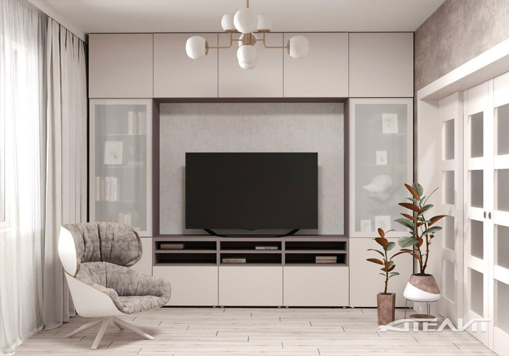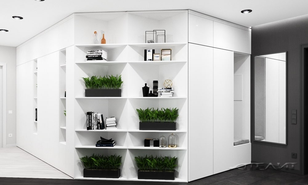 Проект не предполагал глобальной перепланировки. Между гостиной, кухней и прихожей нет дверей, лишь широкие проемы. Дизайнеры решили задействовать каждый метр жилой площади, чтобы сделать квартиру максимально комфортной.