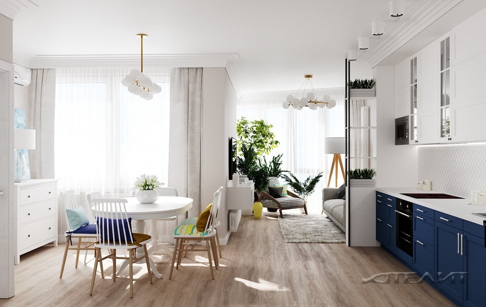 Просторная квартира от студии «Ателит» в минималистичном скандинавском стиле, который оживляют элементы прованса. Дизайнеры создали комфортное пространство для отдыха и общения. Кухня и гостиная образуют единое помещение с четким разделением функциональных зон. Полностью переработан интерьер ванной. Результат совместной работы заказчиков и дизайнеров представлен в фотографиях.