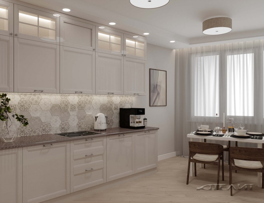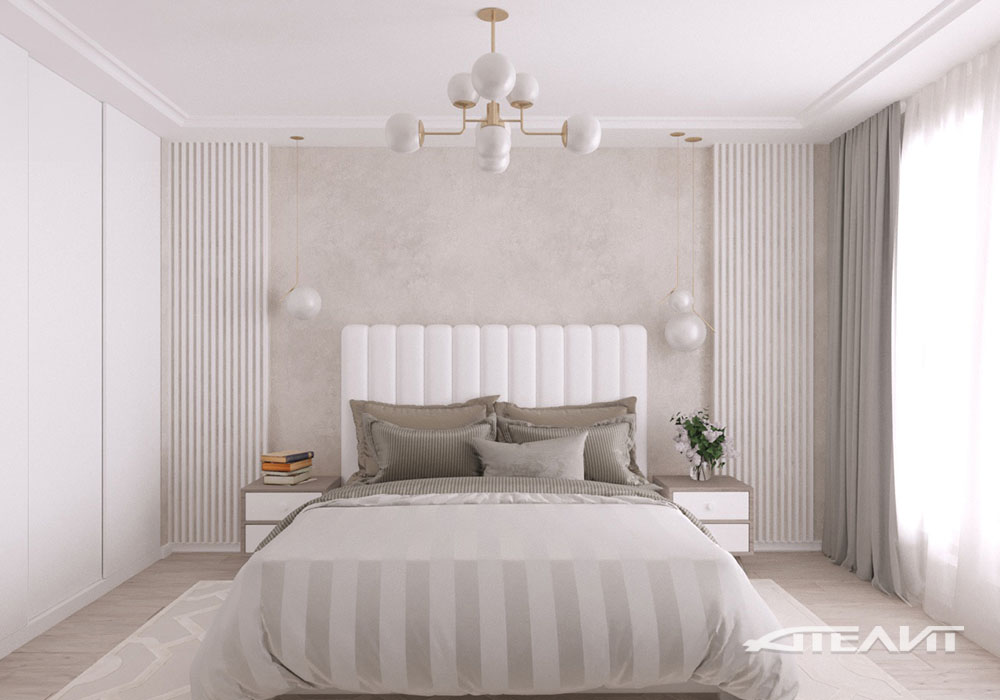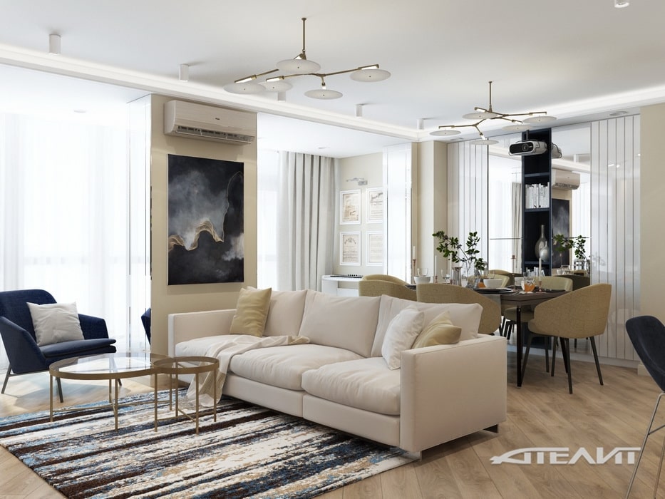 Комфортная современная квартира от компании «Ателит». Интерьер представляет собой легкие вариации неоклассики. Сдержанная палитра с природными сочетаниями, традиционные элементы, обилие натуральных материалов – характерные особенности данного направления.