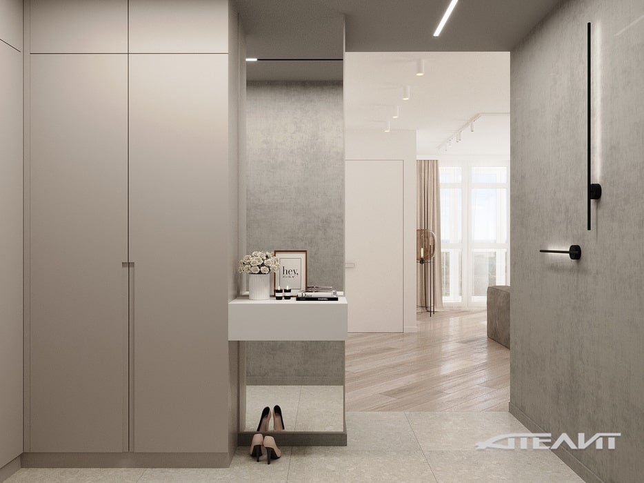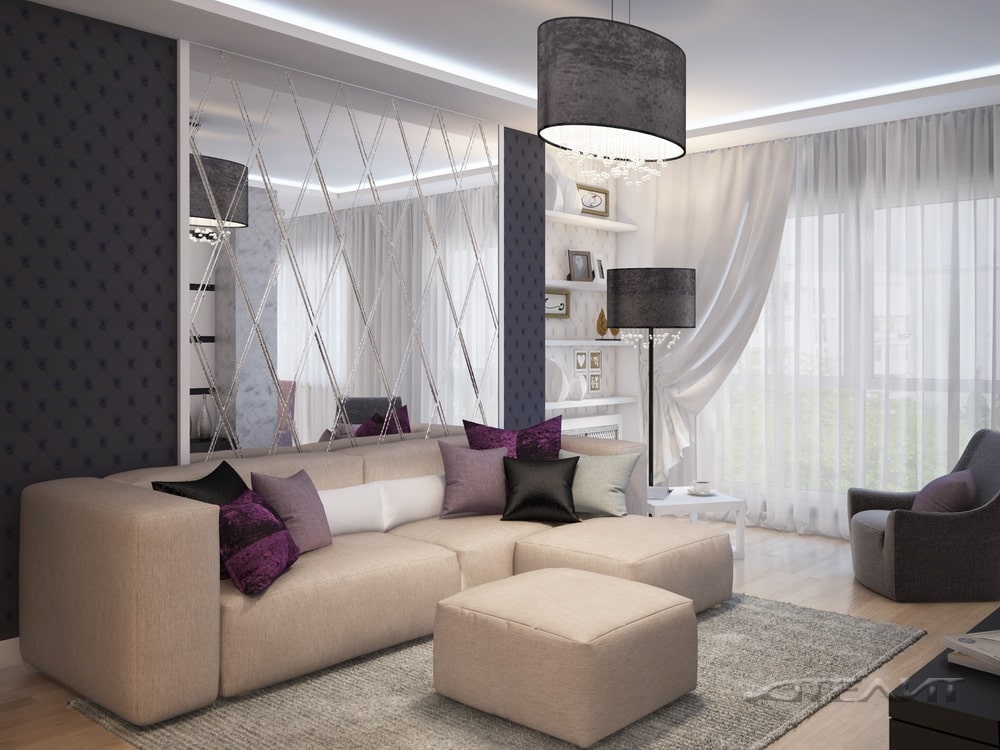 Современная квартира в спокойных тонах. Квартира располагается в панельном доме и заказчиком изначально были выдвинуты условия разработать дизайн, никоим образом не изменяя планировку, а лишь за счет размещения мебели и декорирования, что является, пожалуй, одним из непростых вариантов творческой работы. Такие задачи решаются за счет грамотного подхода к зонированию помещений, подбору и проектированию правильной мебели, аксессуаров, а также за счет некоторых цветовых и стилистических приемов.