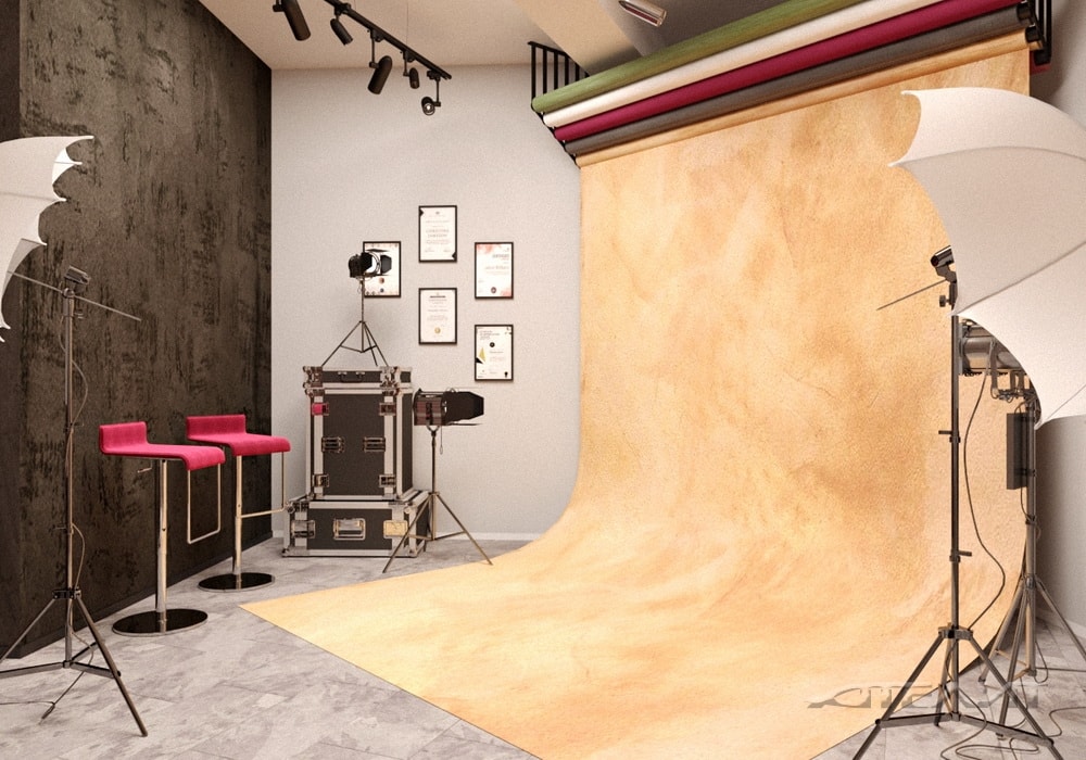 Профессиональная студия с освещением, фонами и разнообразным оборудованием для создания видеороликов и фотосъемки. Помещение разбито на несколько зон разных по стилистике и цветовому решению. Благодаря грамотной планировке дизайнерам студии удалось компактно разместить все необходимое для продуктивной творческой работы.