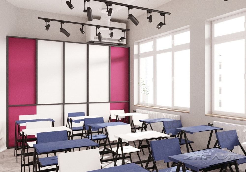 Дизайнеры студии «Ателит» доказали, что даже компактное помещение с нетиповой планировкой при грамотном подходе можно превратить в удобное учебное пространство. Результат творческого взаимодействия специалистов студии и заказчиков представлен на фотографиях.